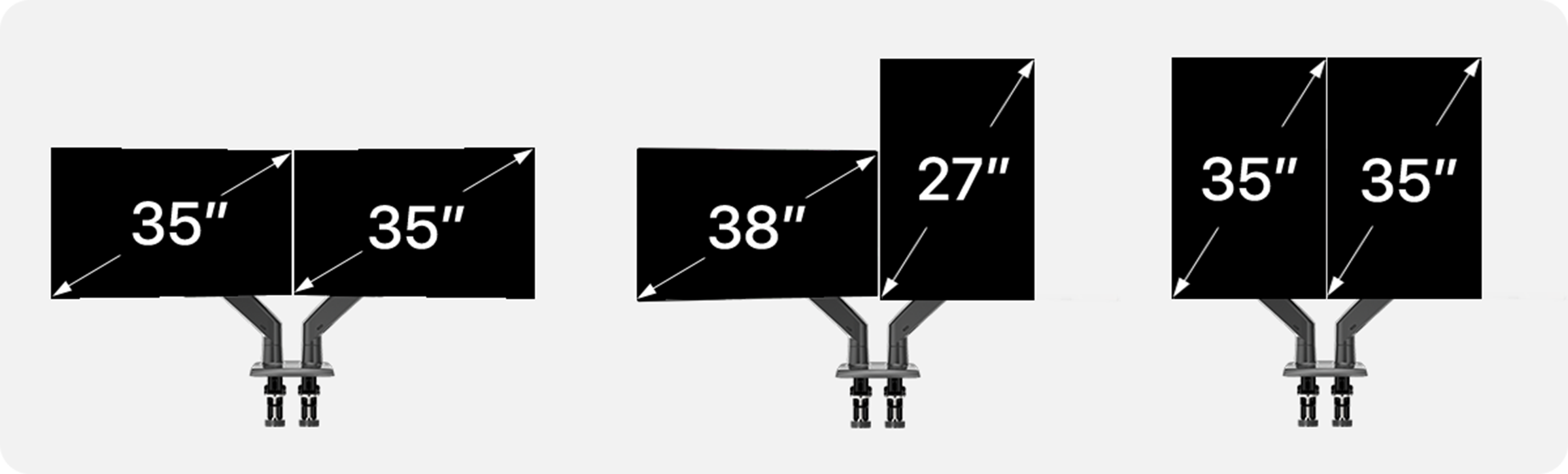 強化ベース、高品質ガススプリング、補強アームにより安定性が向上。22~35インチ、各26.4 lbsまでのモニターをしっかり支えます。VESA 75×75mm / 100×100mm対応で、さまざまなモニターサイズにフィット。